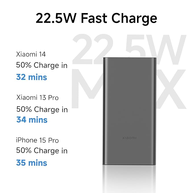 Stay powered up wherever you go with the Xiaomi Power Bank 4i 10000mAh, designed to keep your devices charged efficiently and safely. Equipped with 22.5W fast charging and Power Delivery (PD) support, this power bank ensures your smartphone, tablet, or other electronic devices charge quickly, saving you time during your busy schedule. Whether you’re traveling, commuting, or simply away from a wall socket, the Xiaomi Power Bank 4i is your reliable on-the-go charging companion.